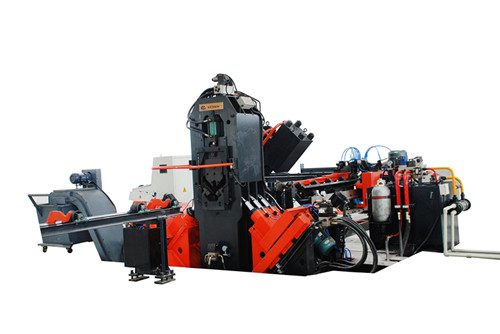 This machine is mainly composed of transverse conveyor, rotating loading system, infeed conveyor, CNC infeed carriage, drilling unit, marking unit, unloading conveyor, as well as hydraulic, electrical and pneumatic systems etc.